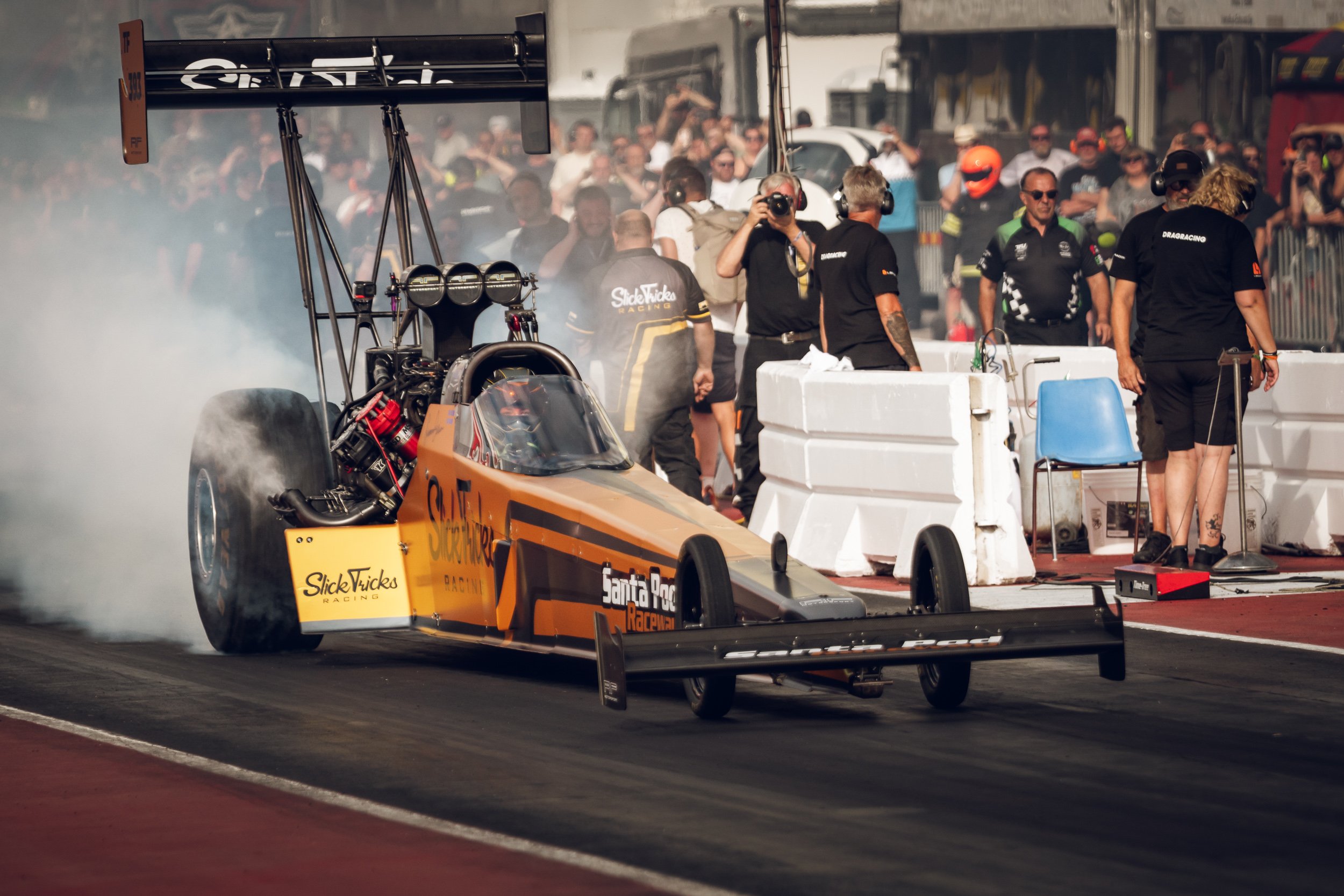 At the top of all the classes sits Top Fuel. Some say these are the fastest-accelerating land vehicles on the planet, and looking at how quickly they disappear from the stating line, it’s easy to believe this claim. With engines producing around 11,000 horsepower, they can reach nearly 500 km/h in just four seconds. No wonder the Top Fuel turn is the most anticipated moment of the weekend, with crowds gathering to witness their run.