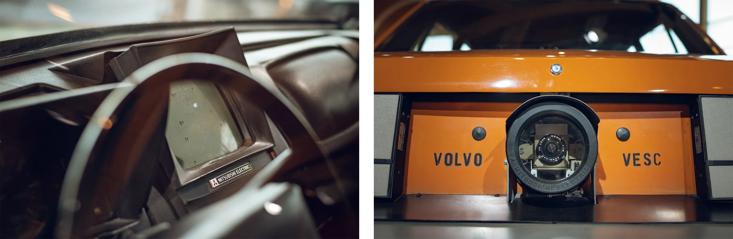 Quite rightly, one of the most prominent spots in the hall is occupied by the Volvo VESC. The name stands for Volvo Experimental Safety Car. Introduced in 1972, the vehicle was packed with an impressive number of safety features that were remarkably innovative for their time. It featured innovations such as early airbags for both front and rear occupants, anti-lock braking (ABS), advanced crumple zones, energy-absorbing bumpers, and a collapsible steering column. From today’s perspective, the feature that stands out the most is the reversing camera. The large lens embedded in the rear bumper is striking enough, but the CRT screen integrated into the dashboard looks truly extraordinary. It was undeniably a bold, forward-thinking idea – one that took many decades for technology to mature before it could be applied in mass-produced cars.